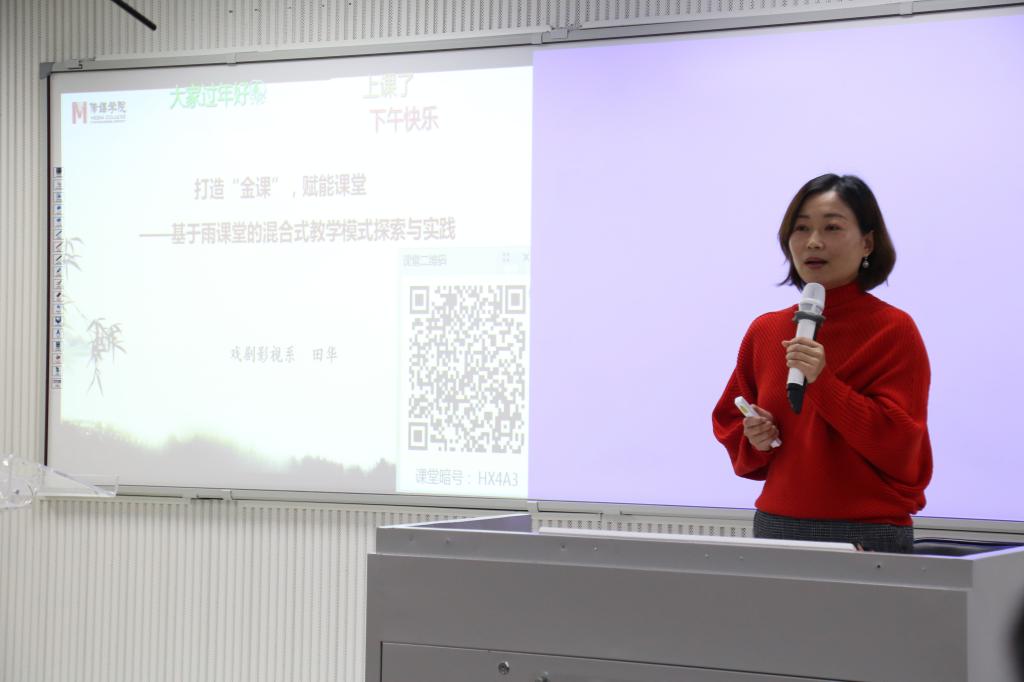 刘想如首先对beat365平台官方网站近两年来课程思政教学活动的开展情况做了全面回顾。紧接着,beat365平台官方网站戏剧影视系主任田华结合个人的校级“课程思政”项目进展情况,从三个方面介绍了自己的创新经验与做法。田华带领老师们进入“雨课堂”智慧教学小程序,对其各个功能进行了体验和使用,展示了智慧课堂的教学优势。在教学设计方面,她将知识目标和育人目标相结合,既点燃学生学习热情,又引导学生形成正确的价值观和意识形态。在课程教学内容上以意境为例,把思政内容融进教学过程,激发学生对中华优秀传统文化的热爱,提升民族自豪感。在“课程思政”教学创新的研讨环节,各小组热烈讨论,踊跃发言。广播电视系副主任冯莉颖说到要及时进行新的教学方式和教学模式的学习与创新,以适应知识传播从碎片式到集群式、从仓储式到媒介型的转变。动画系赵永彬老师谈到自己在《中外美术史》的教学中,大力培养学生的家国情怀,增强学生的文化认同和文化自信,用生动的个人经历告诉学生莫要盲目崇拜西方文化。