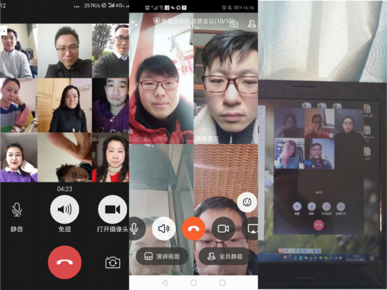 图依次为刘想如副院长、胡波副书记、刘新建副院长参加网上教学专题教研视频会议