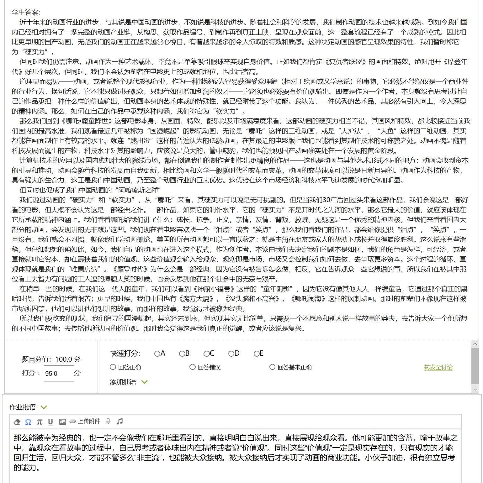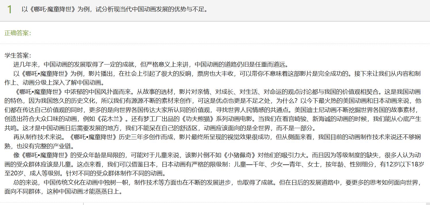在网上教学初期,考虑到上课时段师生人数众多,可能容易由于网络拥堵造成超星学习通卡顿甚至崩溃,影响上课质量,所以针对2019级动画的《世界动画史》课程,栗老师采用录屏PPT讲授的方式。她提前两天将录屏视频传入学习通课程中,保证学生有充裕时间观看学习。同时她也根据课程内容准备问题,在课堂上引导学生针对视频讲授内容开展问题讨论。录屏激发了大家的学习兴趣,平时上课不爱发言的学生也能积极参与进来,认真思考后的回答往往能超出栗老师预期。在互动中启发思维,栗老师看到了学生们巨大的潜力。栗老师经常在学习通中布置与动画作品有关的课后作业,以此来督促学生带着问题去观赏动画作品。影视类史论课程的学习不能一直靠口头讲述,更需要学生认真观看学习作品,才能将理论与实践更好的结合,在掌握史论的同时具备动画人的基本视野。