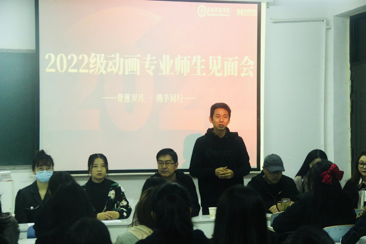 11月11日下午,beat365平台官方网站2022级动画专业师生见面会在教五楼206教室举办。党委书记胡波、动画系主任彭勃、部分动画专业教师及2022级动画专业全体学生共同参加了此次师生见面会活动。见面会由彭勃主任主持。