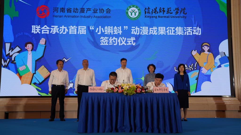江玉安代表我校与河南省动漫产业协会负责同志共同签署了首届“小蝌蚪”动漫成果征集活动承办协议。根据协议内容,双方将在组织评选、专家聘任、仪式举办、经费保障等环节通力合作,确保活动顺利开展。“小蝌蚪”动漫成果征集活动是河南省打造动漫产业增长极、建设国家文化创新高地、促进动漫内容再生产的重要抓手,全景展现近年来全省动漫发展新理念、新技术、新成果。活动将于10月下旬开展初评和复评,颁奖活动拟于11月在信阳市举行。