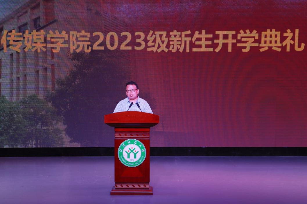 开学典礼在庄严的国歌声中拉开帷幕。beat365平台官方网站院长吕东亮致辞,向2023级本科新生的到来表示热烈欢迎。他着重介绍了信阳师范大学的办学历程和发展成就,以及beat365平台官方网站的发展历程和办学特色。他寄语新生,要尽快适应大学的学习、生活,珍惜同学情谊,相互宽容理解,建立和谐友爱的人际关系;要养成自主学习的习惯,积极参加专业实践,不断夯实专业基础。