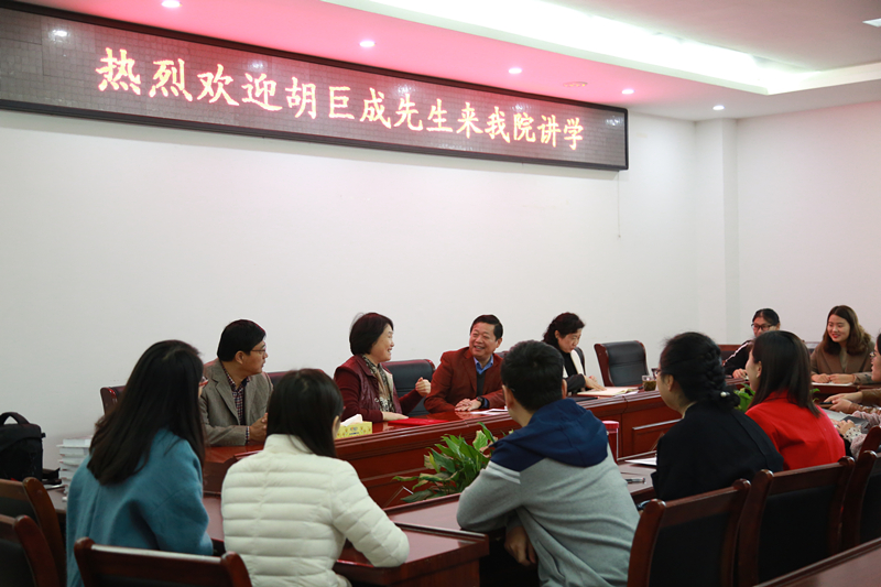 10月17日上午,在社科楼311会议室,河南日报报业集团驻信阳记者站站长胡巨成受聘beat365官网硕士研究生导师,并作题为“人物访谈与新闻采写”的学术报告。院长焦素娥,副院长刘想如、刘新建,教师代表及2017级广播电视专业研究生参加了报告会。