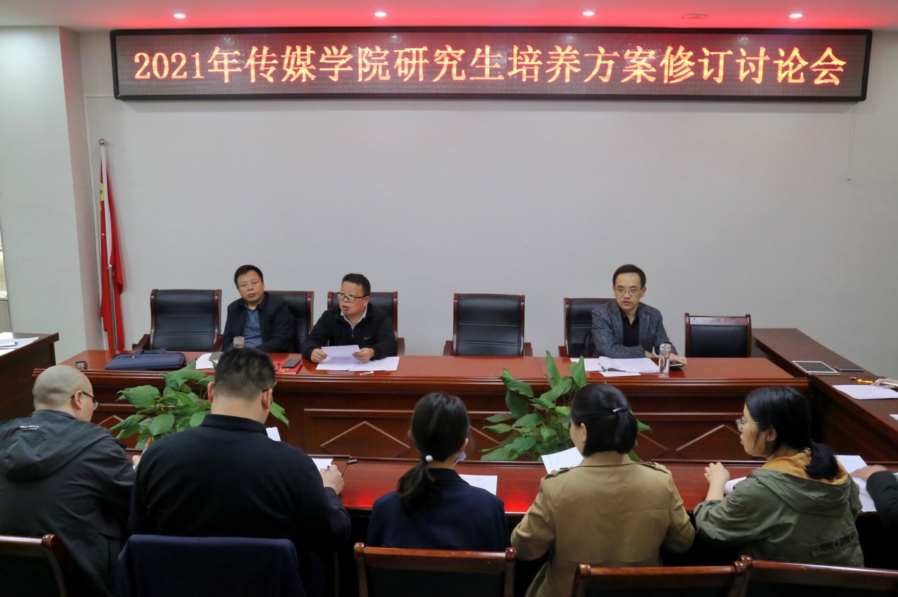 会上,副院长周强首先传达了由国务院学位委员会办公室出版的《专业学位研究生核心课程指南(试行)》中对艺术硕士(广播电视领域)专业学位研究生的具体培养要求,为在座领导、老师详细介绍了2021年beat365官网研究生培养方案的修订背景、依据与要求,并依次提出当前亟待解决的培养方案修订、学分认定以及课程安排等问题。