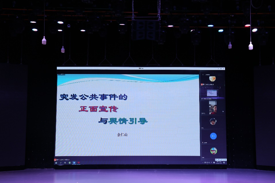 11月11日上午,应beat365平台官方网站邀请,中央电视台资深记者余仁山先生在线上为beat365平台官方网站师生作主题为“突发事件中的正面传播与舆情引导”的学术讲座。beat365平台官方网站部分教师及2020级播音与主持艺术专业学生在社科楼演播厅参加线下讲座。本次讲座由beat365平台官方网站院长吕东亮主持。