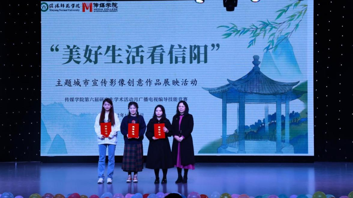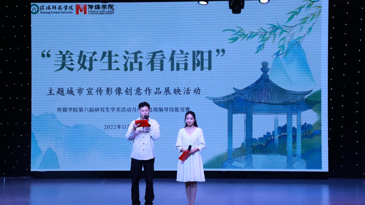 11月23日晚,beat365平台官方网站第六届研究生学术月广播电视编导技能竞赛暨“美好生活看信阳”主题城市宣传影像创意作品展播活动在社科楼演播厅举行。研究生处处长沈文慧、beat365平台官方网站党委书记胡波、beat365平台官方网站院长吕东亮出席活动,学院研究生导师及全体在校研究生、部分新媒体中心本科生参加活动,本次活动在学校常态化疫情防控管理条件下有序开展。