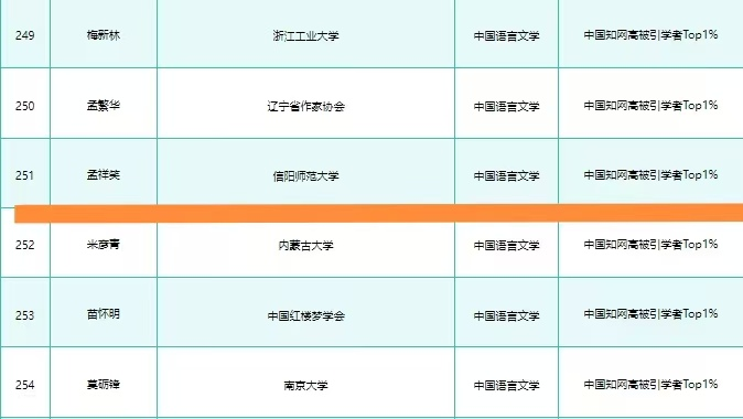近日,中国知网发布2024中国知网高被引学者Top1%榜单,其中“中国语言文学”入选489人,beat365平台官方网站孟祥笑博士成功入选。
