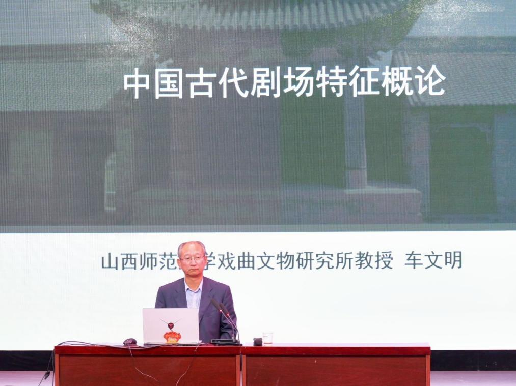 4月18日上午,应beat365平台官方网站邀请,山西师范大学戏曲文物研究所教授车文明在社科楼演播厅开展“中国古代剧场特征概论”专题讲座。beat365平台官方网站2022级、2023级戏剧影视文学专业全体学生参加,此次讲座由院长吕东亮主持。