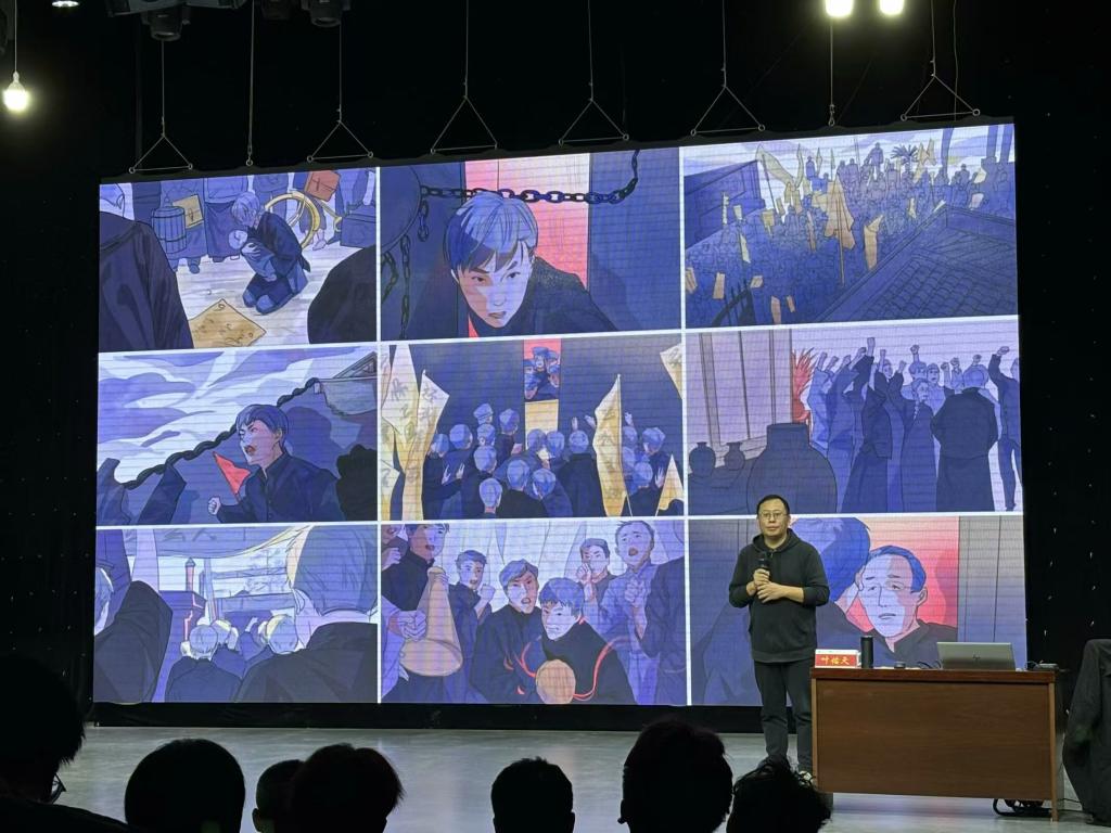 随后,叶佑天教授与现场师生深入探讨了“专业之光,人文视觉”环节,即平面设计与工艺美术在动画创作中的应用与影响。他通过解析这些领域中的意象表达与审美追求,展示了它们如何为动画作品增添人文色彩与视觉美感,进一步拓宽了听众的视野。