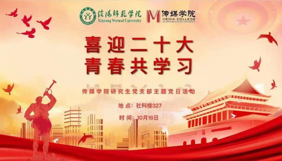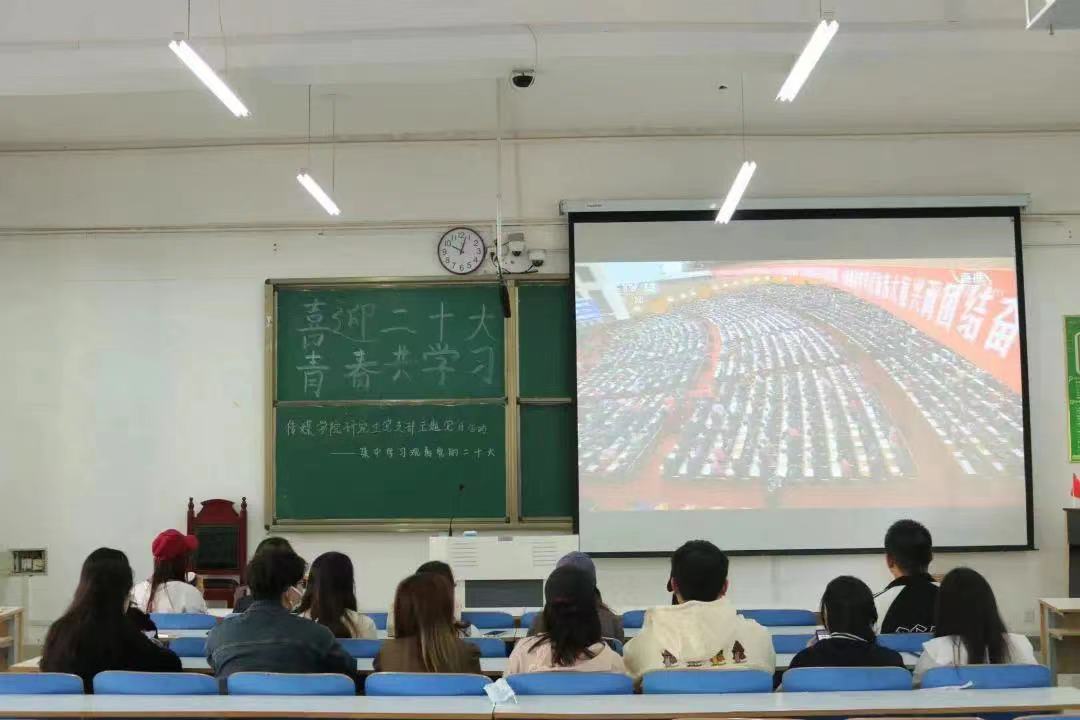 2022年10月16日,举世瞩目的中国共产党第二十次全国代表大会在北京隆重开幕。在beat365平台官方网站党委的指导下,beat365平台官方网站研究生党支部于10月16日在社科楼327教室组织集中学习观看党的二十大开幕会。beat365平台官方网站研究生党支部书记陈美汐、beat365平台官方网站全体在校研究生党员参加活动。