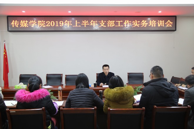 2月24日下午,2019年上半年党支部工作实务培训会在学院会议室召开,党委书记王振海及各党支部书记、支部委员参加了会议。