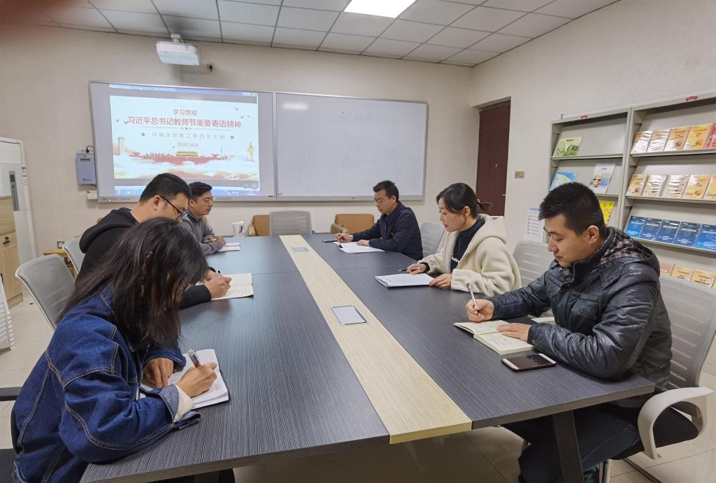 田华同志首先传达了学校转发的《教育部教育部关于学习贯彻习近平总书记教师节重要寄语精神的通知》,对文件精神和相关要求作了明确说明,并畅谈了学习心得。随后,各位党员分别结合自身教学、科研和教学管理工作情况,谈论了学习感想。