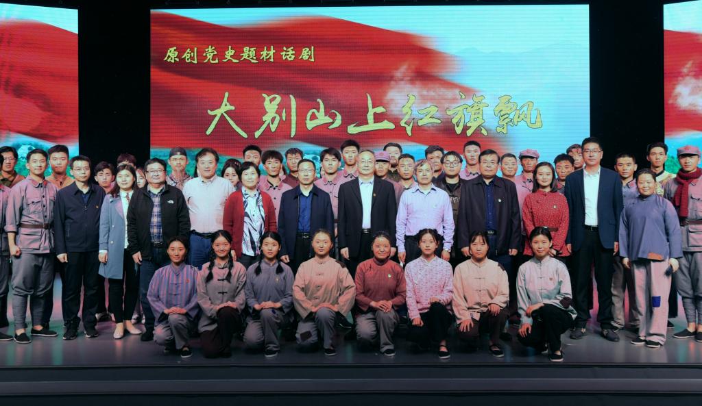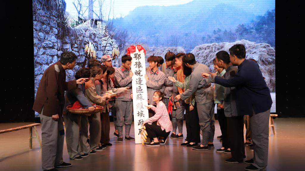 为确保话剧编排有序推进,学院成立了剧组临时党支部,强化组织保障。自1月份以来,党支部带领剧组成员先后多次深入鄂豫皖革命纪念馆、金刚台大别山精神文化传承中心、何家冲红二十五军长征出发地实地走访革命遗址,为话剧创作打下基础。