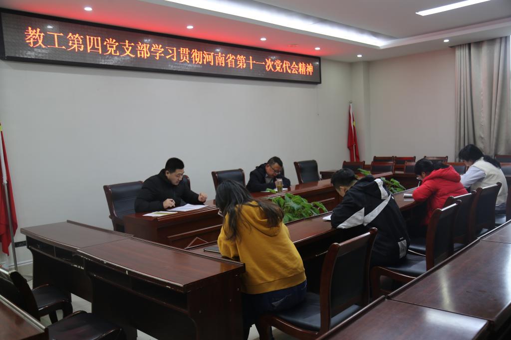 会上,教工第四党支部书记段金龙介绍了河南省第十一次党代会精神,带领大家学习了会议提出的确立“两个确保”奋斗目标;全面实施“十大战略”;建设国家创新高地;推动中心城市“起高峰”、县域经济“成高原”;全面推进乡村振兴;促进全体人民共同富裕;坚定不移推进全面从严治党等方针政策。会上大家结合自己的工作实际,发表了对此次会议精神的理解。全体党员表示,第十一次党代会为今后工作的展开指明了方向,大家将鼓足干劲,力争上游,为高质量建设现代化河南、高水平实现现代化河南贡献自己的力量。