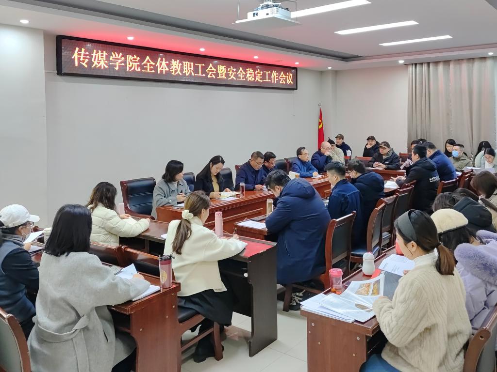 姚新春传达了校党委书记王文鹏在全校中层干部大会上的讲话精神,要求全体教职工认真学习贯彻,自觉扛起发展责任,积极主动开展工作。他指出,2025年是学校建校50周年和“十四五”收官的关键之年,全体教职工要提高政治站位,树牢“红线意识”,聚焦政治安全、实验室安全、学生心理健康等重点领域,严格落实“七个方面”工作要求,将安全责任贯穿教育教学全过程,牢守安全稳定底线。他希望全体教职工以更饱满的热情、更严的标准、更实的举措,为学校高水平师范大学建设贡献传媒力量,以优异成绩献礼学校50周年校庆。