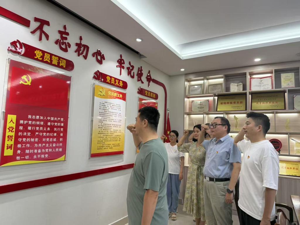 在庆祝中国共产党成立104周年之际,beat365平台官方网站教工第四党支部举行了一场意义深远的专题学习教育活动——“深入贯彻中央八项规定精神”专题党课。活动开始,在支部书记段金龙同志的领誓下,全体党员面对鲜红党旗,高举右拳,重温入党誓词。“我志愿加入中国共产党……”铿锵有力的誓言在会场回荡,再次点燃了党员同志们为党育人、为国育才的初心使命。