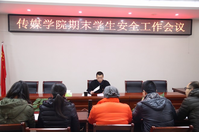 王振海传达了学校期末学生安全工作会议精神,并就学生医保收缴、期末考试动员、冬季用电安全、研究生考试期间考勤纪律和防传销等事宜进行安排。