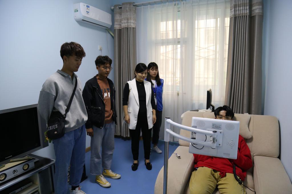 在工作人员的带领下,同学们集体观看了心语工坊的宣传片,而后依次参观预约服务室、专家咨询室和心理测评室,并体验了宣泄室和沙盘活动室的诊疗设施。通过工作人员的讲解,同学们对心理健康问题有了更深层次的了解,同时对心语工坊的日常工作表现出浓厚的兴趣。