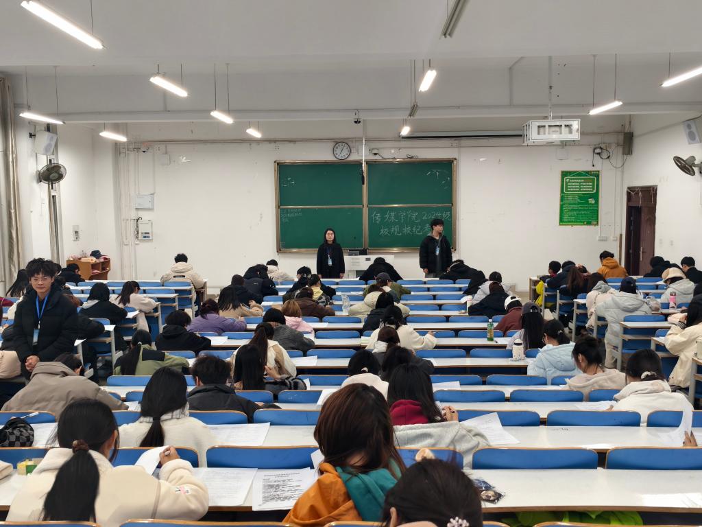 此次考试采取开卷考试的方式,涵盖了党团基本知识、网络安全知识、防电信诈骗知识,校规校纪、学籍学业管理、资助工作、评奖评优等多方面知识点。题型丰富,采用单选题,多选题,判断题,填空题和简答题。考试现场秩序井然,同学们认真答题,展现出良好的精神风貌。