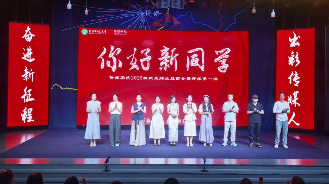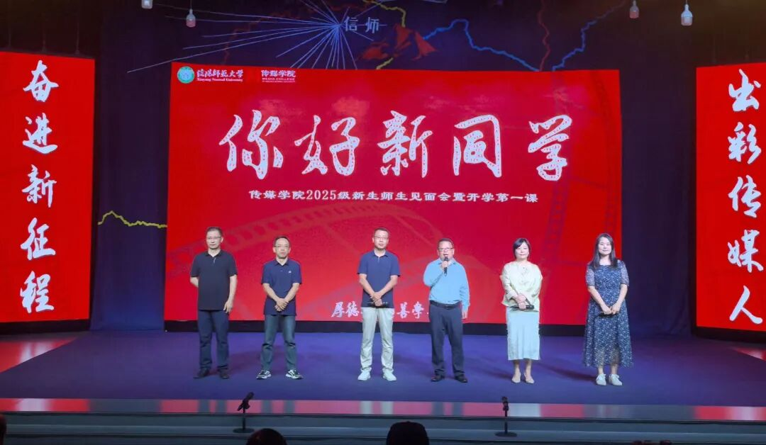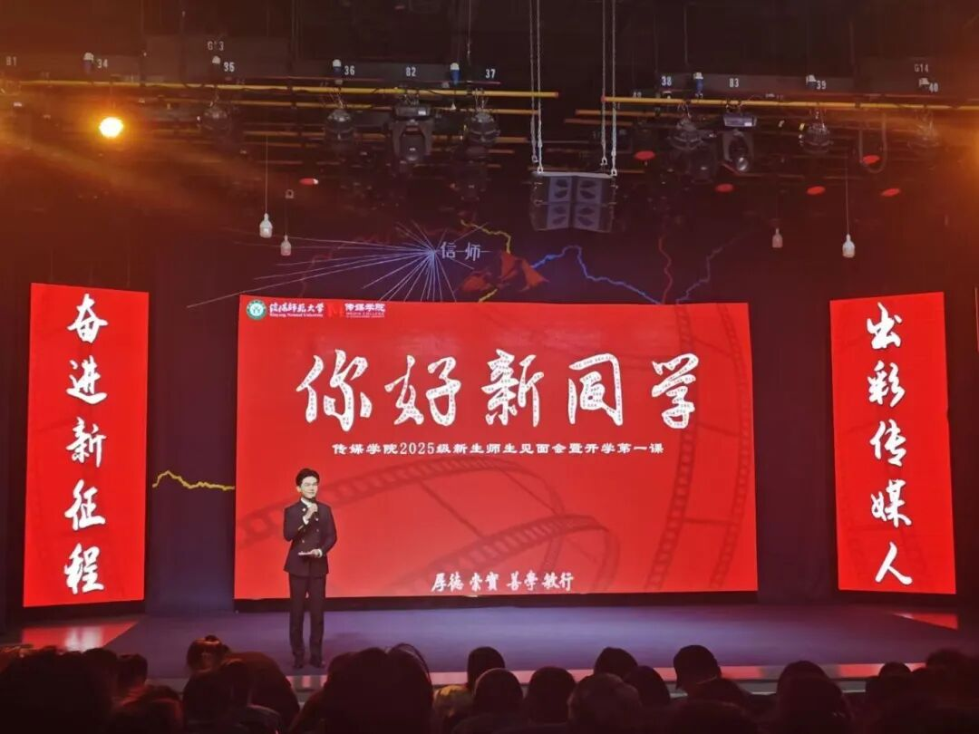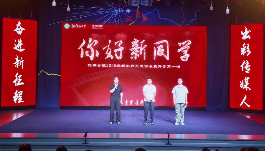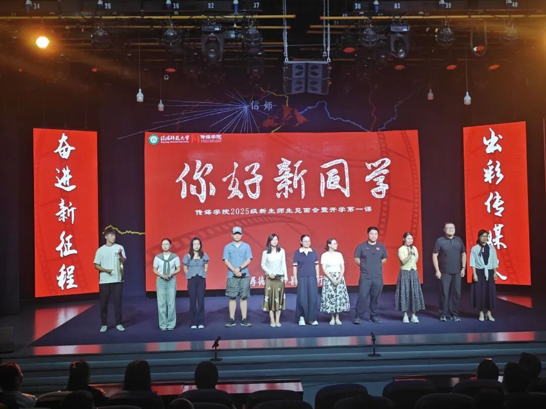 9月16日下午,beat365平台官方网站2025级新生师生见面会暨开学第一课在社科楼演播厅举行。学院领导班子成员、全体教职工、2025级全体学生参加。见面会由23级播音与主持艺术专业秦硕硕同学主持。