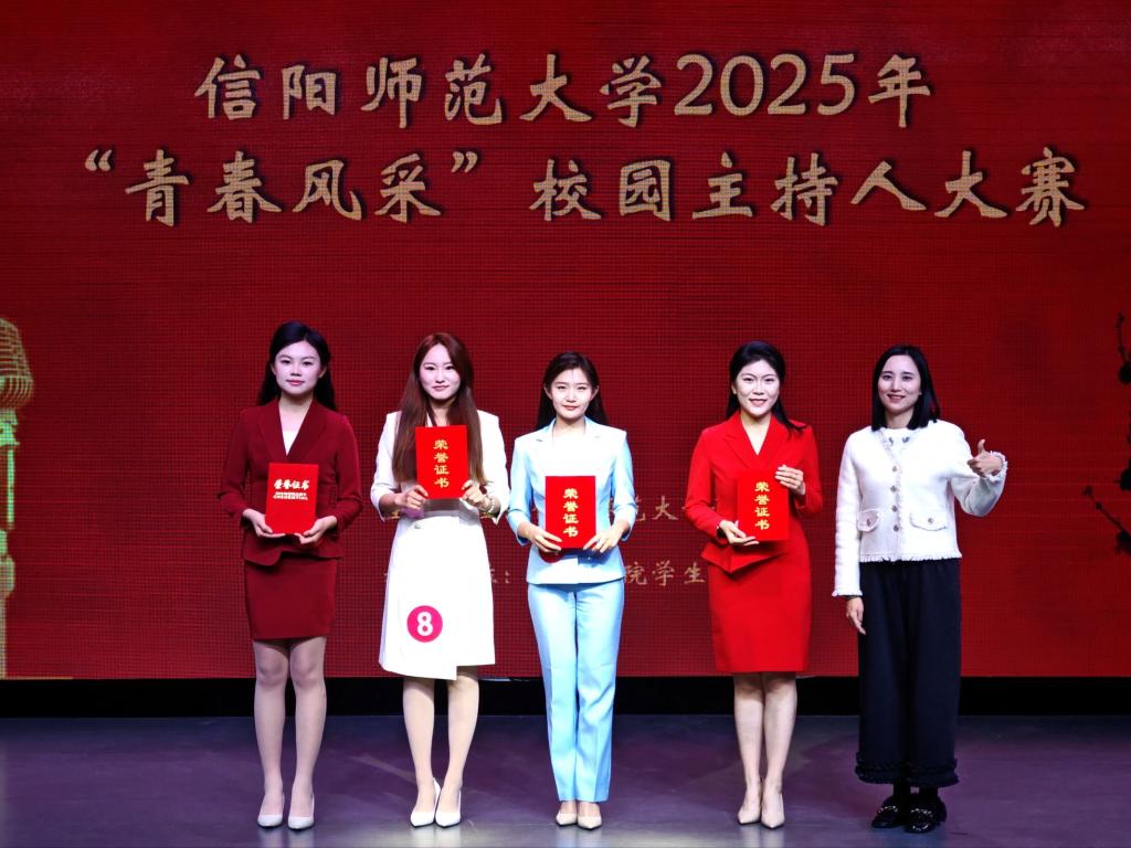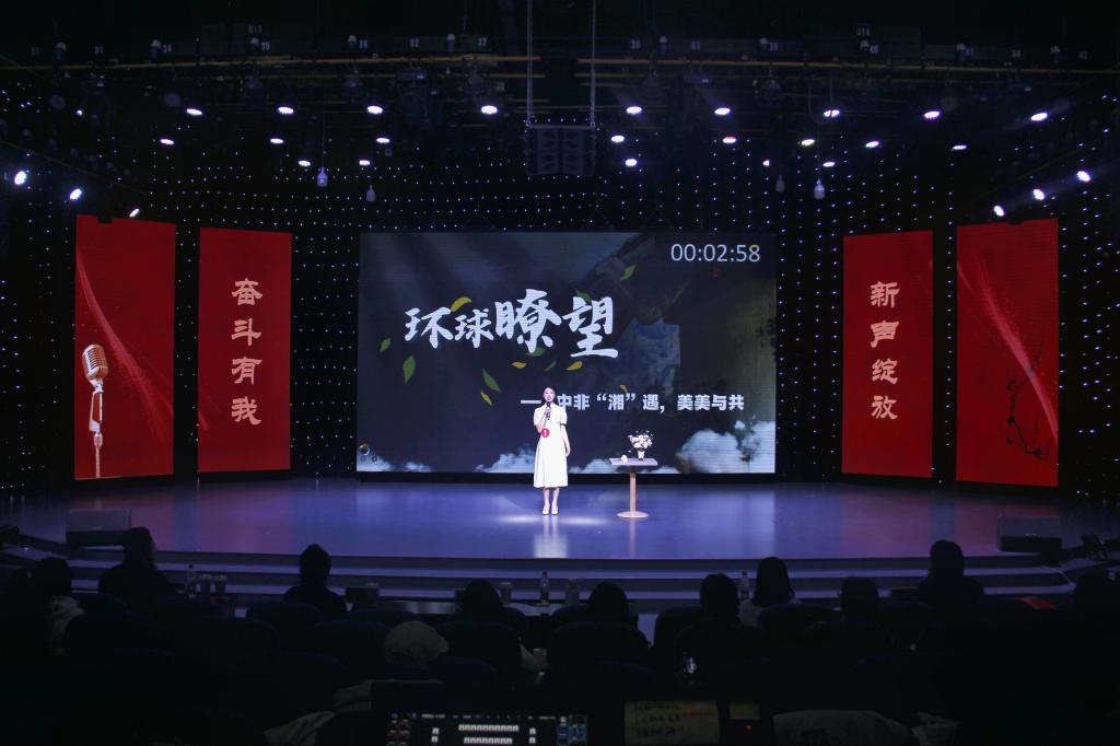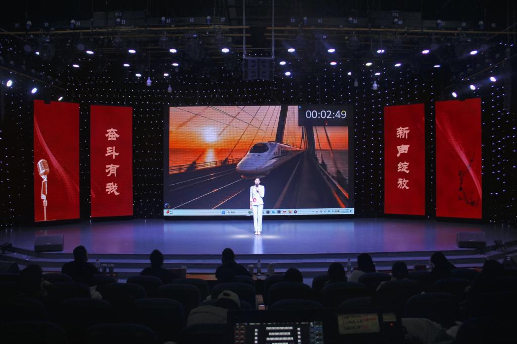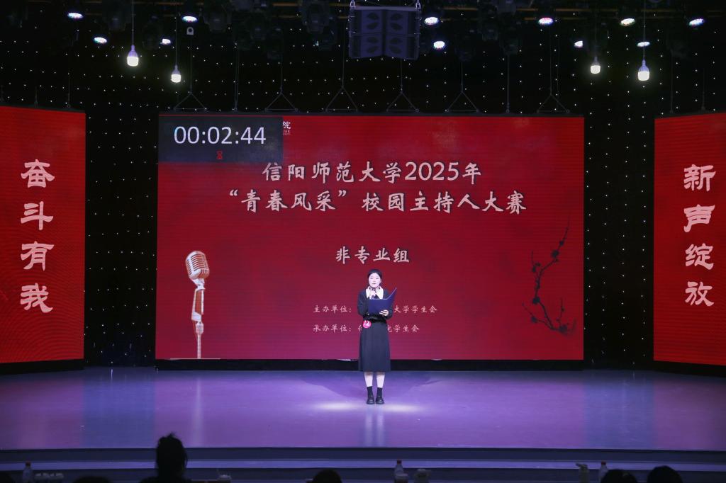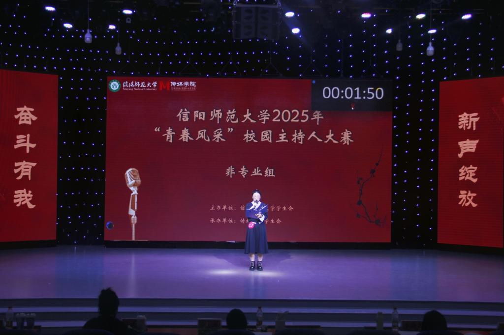 首先登台的是非专业组选手,他们以创意为笔,书写热爱篇章。自备稿件朗诵时,文学院马林青咏诵家国情怀,商学院邢诗宜诠释大别山精神,教育科学学院李昱霏借文字传递成长力量。自备主持环节,医学院董兵航带来的《大美许昌》,带领观众“云游”许昌,教育科学学院姜可欣在主持《历史运动会》节目中把投壶、蹴鞠等传统运动讲得妙趣横生。多元表达让赛场新意盎然。