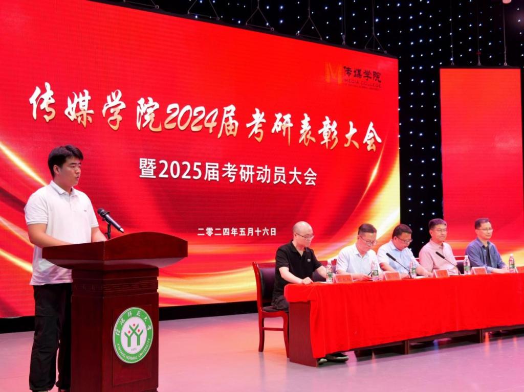 5月16日晚,beat365官网在社科楼演播厅举行2024届考研表彰会暨2025届考研动员大会。党委书记胡波、院长吕东亮、党委副书记余伟、党委委员、实践教学中心主任范少华、党委委员、办公室主任陈长旭、2020级毕业班辅导员、2021级辅导员、各系系主任、2020级考研学生及2021级全体同学参加活动。大会由余伟主持。
