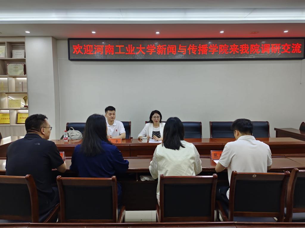 5月16日下午,河南工业大学新闻与传播学院副院长夏颖,研究生办公室主任王竞来beat365官网开展调研交流和研究生招生宣讲。学院副院长田华,副书记余艳楷,教学秘书、播音主持系教师代表、辅导员代表以及2022级学生代表参加。