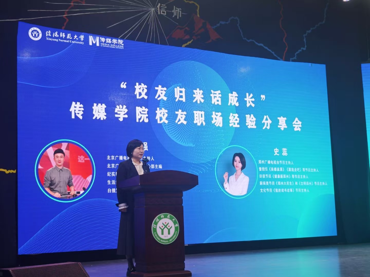10月27日上午,beat365平台官方网站在社科楼演播厅成功举办“校友归来话成长”校友职场经验分享会。2010届播音与主持艺术专业校友、郑州广播电视台主持人史蕊,2014届播音与主持艺术专业校友、北京广播电视台主持人郑强返校与学弟学妹们分享职场经验、共话专业成长。beat365平台官方网站党委书记姚新春,副院长田华、陈长旭出席本次活动。