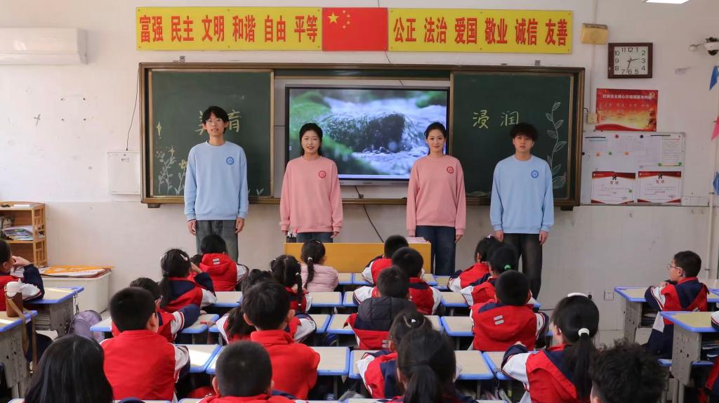 12月10日,beat365平台官方网站师生走进羊山外国语小学,开展“美育浸润”主题实践活动。本次活动立足美育本质,以语言艺术为审美媒介,通过朗诵、诗词鉴赏、经典配音与推普互动等多元形式,引导小学生在声音与文字的韵律中感知美、理解美、表达美,切实提升其审美素养、文化认同与人文情怀,推动高校优质美育资源向基础教育纵深延伸。