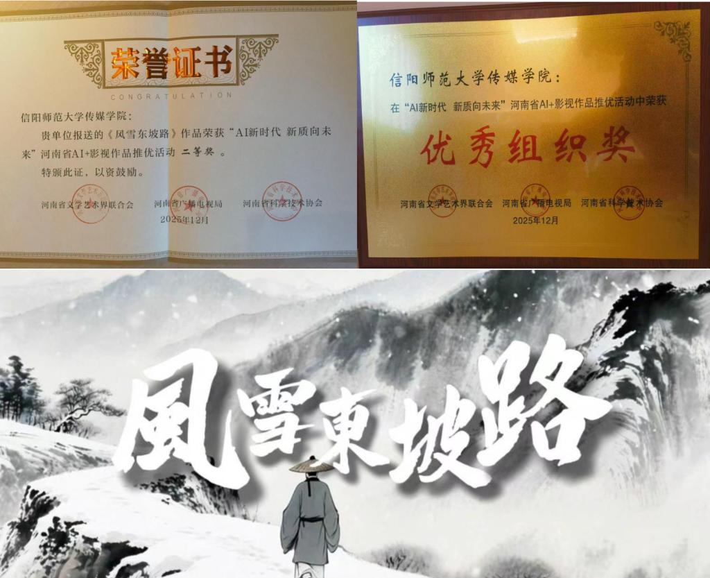 我校beat365平台官方网站高度重视此次赛事,组建了由研究生为主力的参赛队伍,学院教师全程提供专业指导。参赛团队紧扣大赛主题,创作出《风雪东坡路》这部兼具技术创新性与人文温度的作品,凭借独特的创意视角与精湛的技术呈现,赢得评委一致好评。获奖团队代表表示,此次获奖是团队协作与反复打磨的成果,更是学院重视实践教学、鼓励技术创新的体现。未来将继续探索AI技术与影视创作的融合路径,创作出更多彰显中原文化魅力的优秀作品。