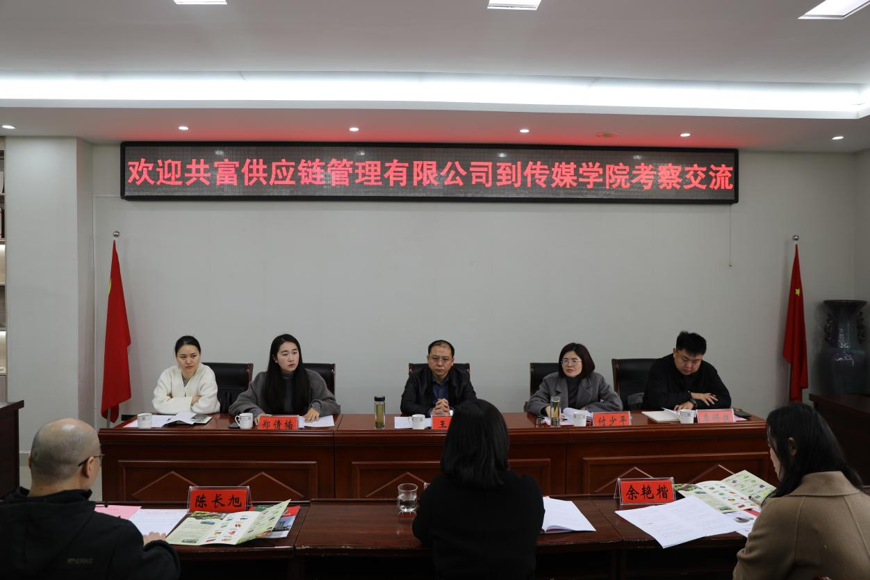 信阳市共富供应链管理有限公司副总经理付少平介绍了企业的发展状况、业务布局以及人才需求情况,期望通过校企合作搭建人才培养与产业需求对接的平台。随后,双方围绕《校企合作方案(草案)》,就实习基地建设、课程共建、科研协同等内容展开了深入交流,并达成了初步的合作共识。