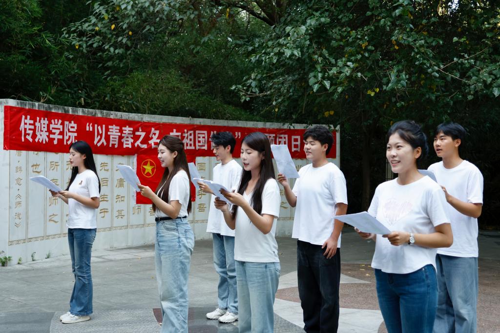 随后,24级新生们以匠心独运的方式排列成醒目的“75”字样,随着《歌唱祖国》的悠扬旋律,大家纷纷挥舞着手中的五星红旗,用他们最真挚的情感,用青春之歌向祖国表达着无尽的敬意和热爱。