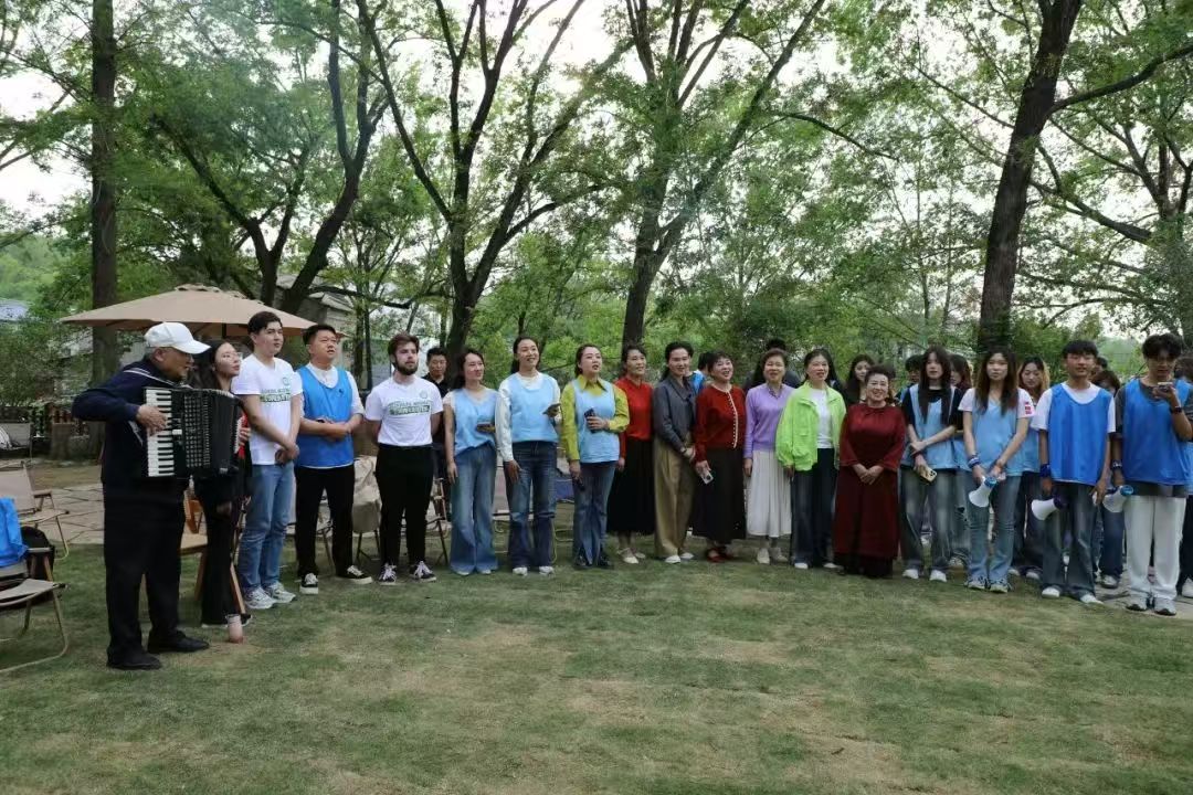 在精巧雅致的艺居小院,师生们身着传统服饰,在古琴悠扬的旋律中,一起深情朗诵李商隐《锦瑟》、苏轼《水调歌头·明月几时有》、李白《清平调》等古典诗词,体验中华优秀传统文化的精深与美妙;在宽敞明净的文化广场,伴随着婉转的手风琴声,师生们与游客、村民们一起合唱《喀秋莎》《让我们荡起双桨》等中外名曲,齐声诵读《青春》《可爱的中国》等经典名篇。不同职业、不同年龄、不同国籍的人们用歌声、诵读声架起沟通的桥梁,共赴一场春日的文化盛宴。