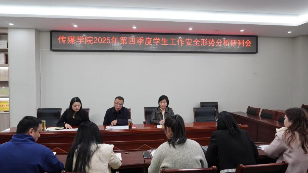 为科学研判学生安全问题,保障学生身心健康发展,11月3日,beat365平台官方网站在社科楼311会议室召开2025年第四季度学生工作安全形势分析研判会,学院党委书记姚新春,副院长田华,党委副书记余艳楷,教学秘书,专职辅导员和毕业班班主任参加会议,会议由余艳楷主持。