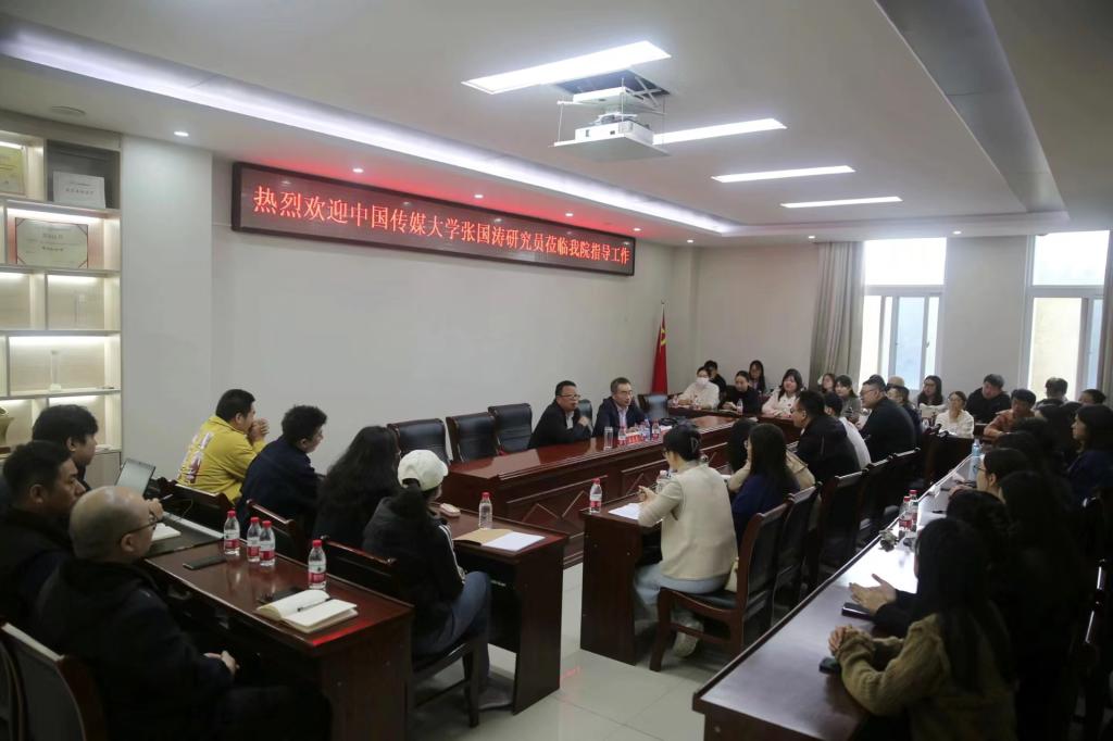 讲座结束后,张国涛教授与学院教师代表、广播电视专业研究生在学院会议室对学科期刊发展现状及教材出版等问题展开交流探讨,并针对师生提出问题一一解答。